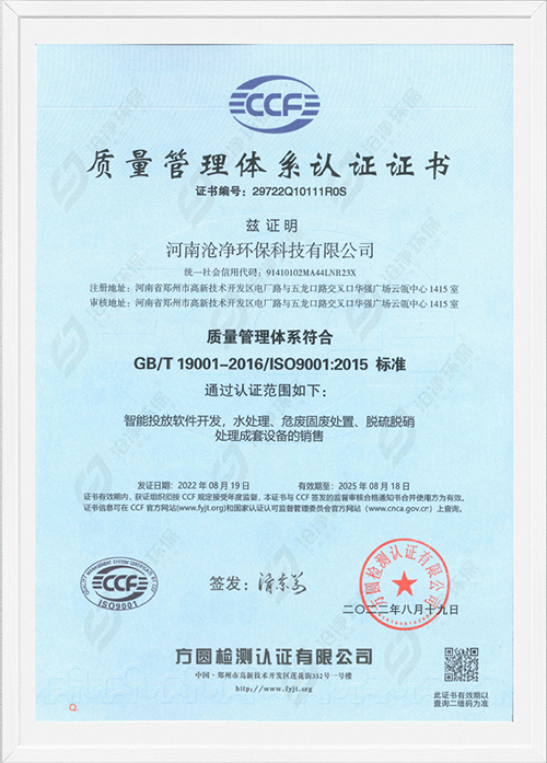 滄凈環(huán)保,是一家集科研、設(shè)計(jì),工程施工、調(diào)試于一體的智能粉體投加系統(tǒng)-國家級高新技術(shù)企業(yè)【編號:GR202341000885】,旗下產(chǎn)品涵蓋水處理、危廢固廢處置,脫硫脫硝處理等領(lǐng)域,且通過ISO 9001:2015質(zhì)量管理體系認(rèn)證。
